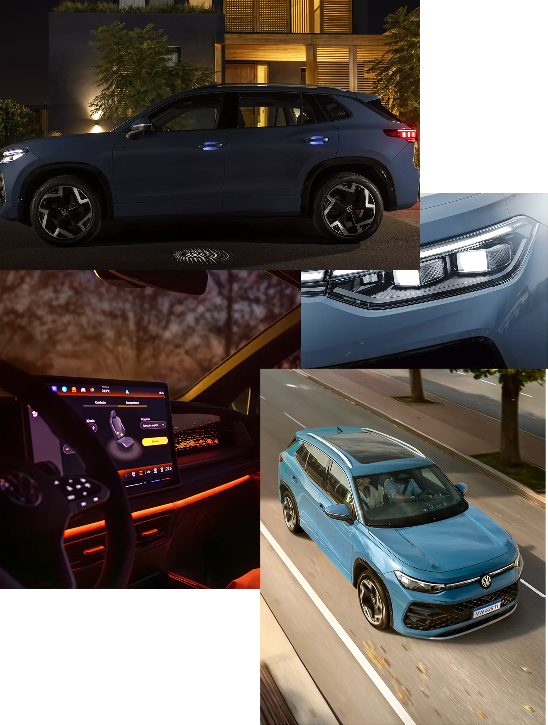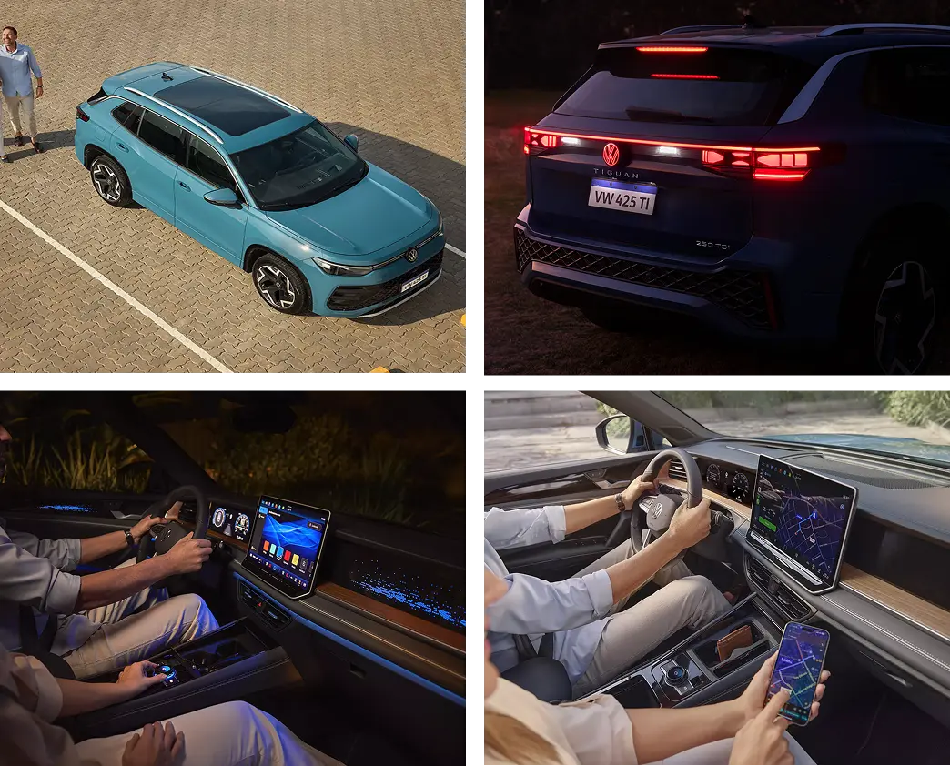 El diseño renovado de Nuevo Tiguan se caracteriza por combinar con un perfecto equilibrio la robustez y la elegancia. Acompañan los elementos R-Line y su emblema en la parrilla frontal y laterales para resaltar su look deportivo y elegante. La luz delantera en color blanco y la luz trasera en color rojo, ambas con el logo VW iluminado, junto a la luz ambiental con proyección del logo VW en piso crean una presencia imponente.